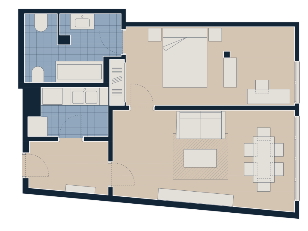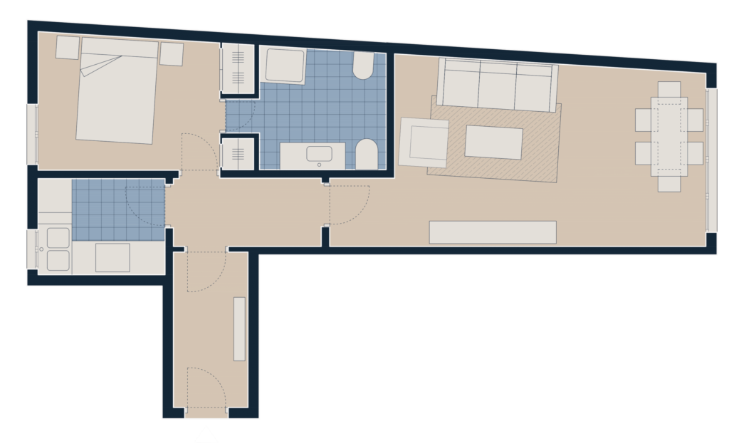 Selected one-bedroom apartments, with an occupancy of up to 2 people and between 56 and 68 m², to feel at home in the heart of Madrid.